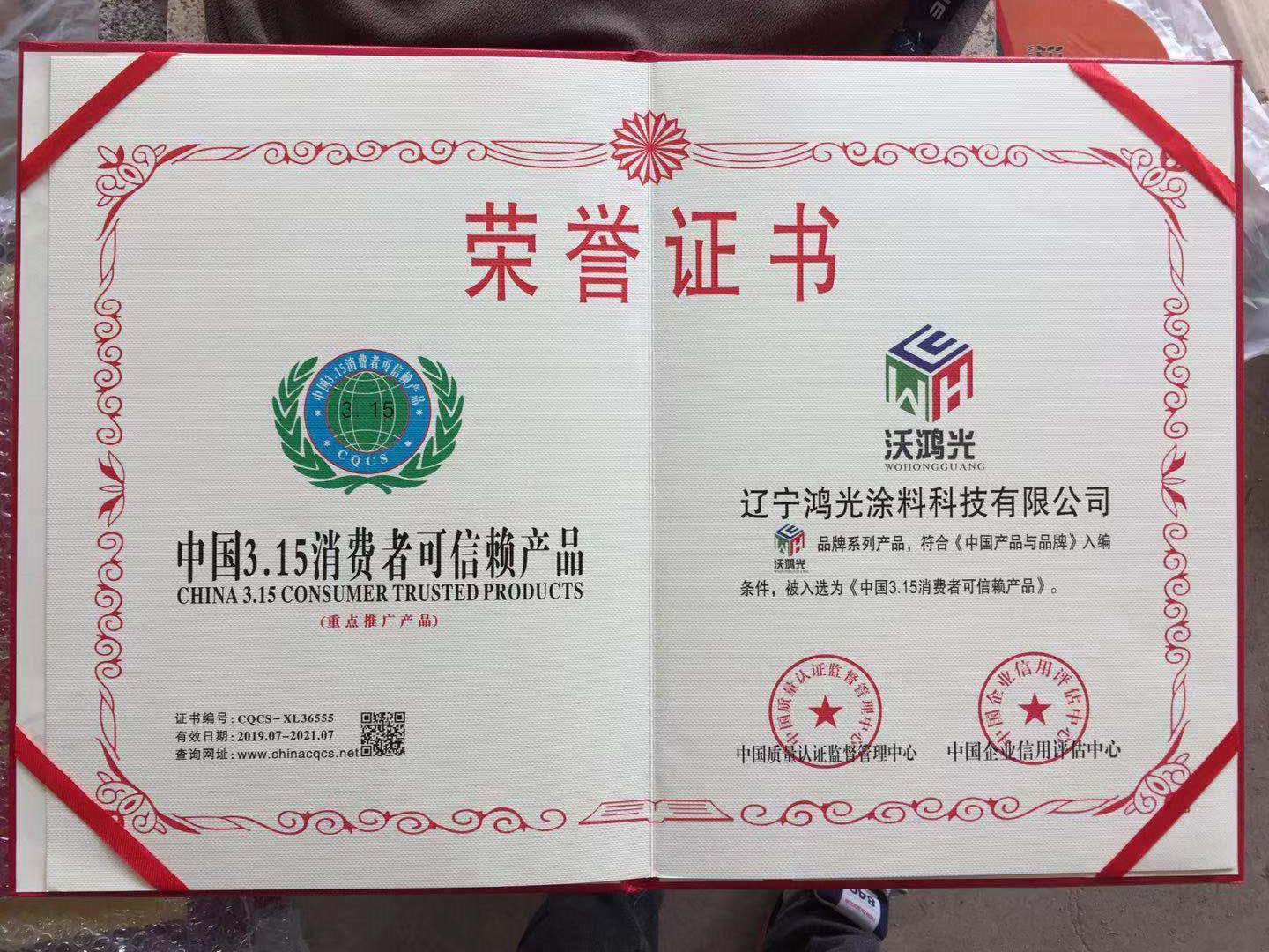 沃鴻光無(wú)機(jī)涂料被評(píng)為中國(guó)3.15消費(fèi)者可信賴產(chǎn)品